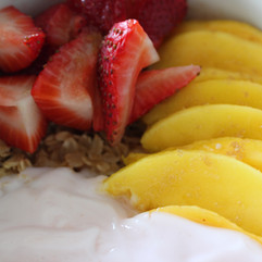 Then slice whatever fruit you have on hand. Toss it in and you could be on your way! If you wanna get fancy then you could add a dollop of yogurt too.