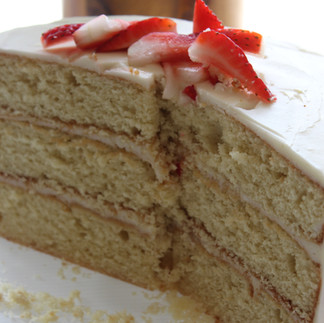 Divide the batter among the pans. Stagger the pans in the oven so there is none directly above another. Bake for 30-35 minutes until cakes pull from the sides of the pans a bit, are golden and a toothpick comes out clean from the center. Switch racks and rotate the cakes after 25 minutes.