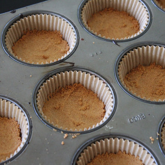 Add to the paper liners and press down firmly. Bake for 8 minutes. Set aside and let cool completely.